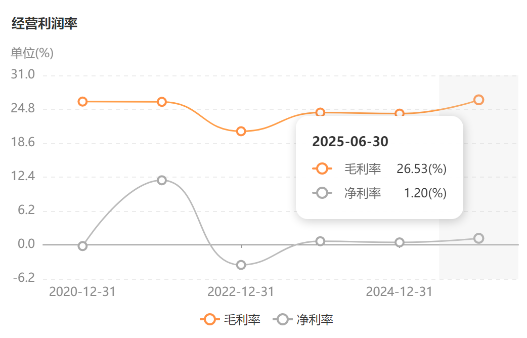 东软集团2025年中报高慢,举座毛利率仅26.53%,同比下降3.84个百分点,远低于软件行业40%-60%的平均水平,泄露业务模式的致命死穴。