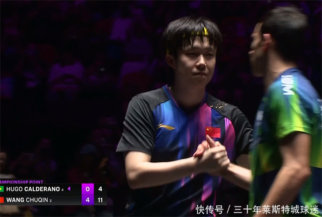 WTT澳门冠军赛男单决赛,王楚钦4-0慑服巴西选手雨果,获取澳门冠军赛男单冠军,四局比分:11-9、11-7、11-9、11-4。