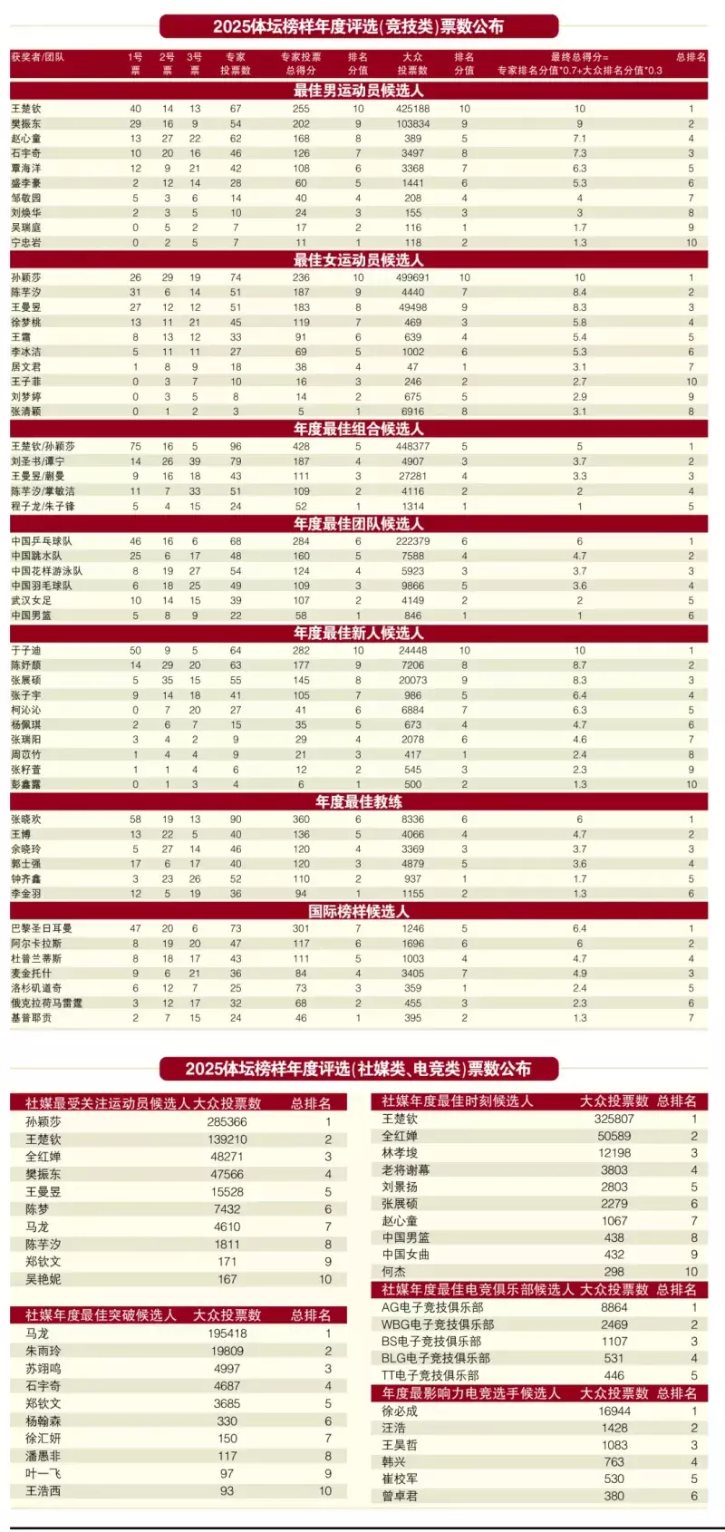 “体坛榜样·年度评比”洞开员榜样的力量奖由《体坛周报》于2009年发起,旨在每年彩选并赏赐夙昔度最具榜样力量的体坛东说念主物。2025年度评比后果名单如下: