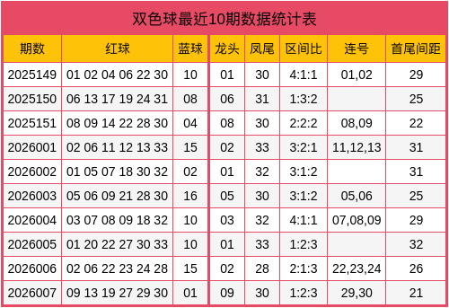 夏师父第2026008期双色球数据统计表