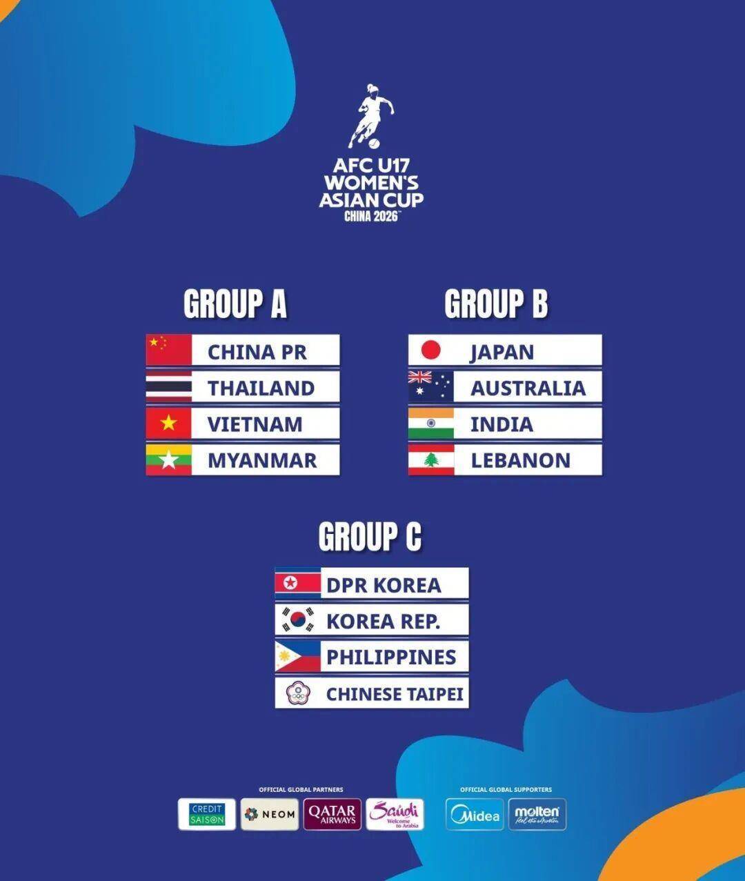 北京工夫2月12日下昼,2026亚足联U17女足亚洲杯&U17亚洲杯的抽签成果厚爱揭晓!U17女足亚洲杯方面,人中国U-17国度女子足球队与泰国队、越南队、缅甸队同分在A组。U17亚洲杯方面,中国U-17国度男人足球队与日本队、印度尼西亚队、卡塔尔队同分在B组。具体成果如下: